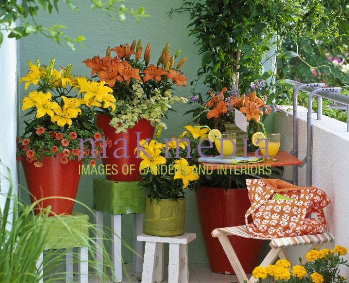 Lilium asiaticus 'Orange Pixie' 'Yellow Pixie' (Lilien)