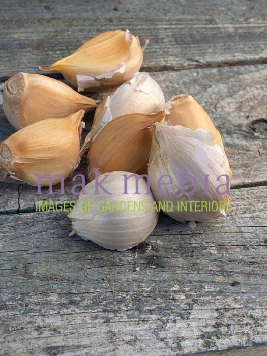 Pile of large cloves of Elephant Garlic ready to be planted.